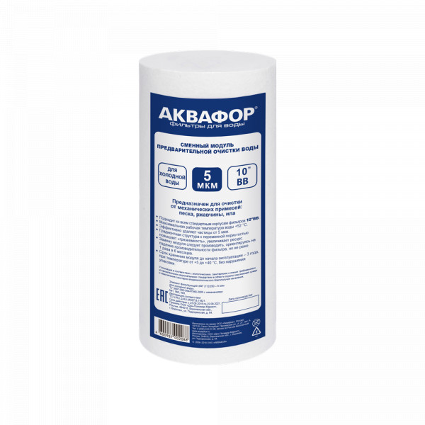 Сменный модуль для очистки холодной воды от видимых растворенных взвесей - песка, ржавчины и других механических примесей. Обеспечивает базовую предочистку воды во всей квартире, при этом напор остается практически без изменений. В зависимости от степени загрязнения, выбирайте картриджи пористостью 5 или 20 микрон.