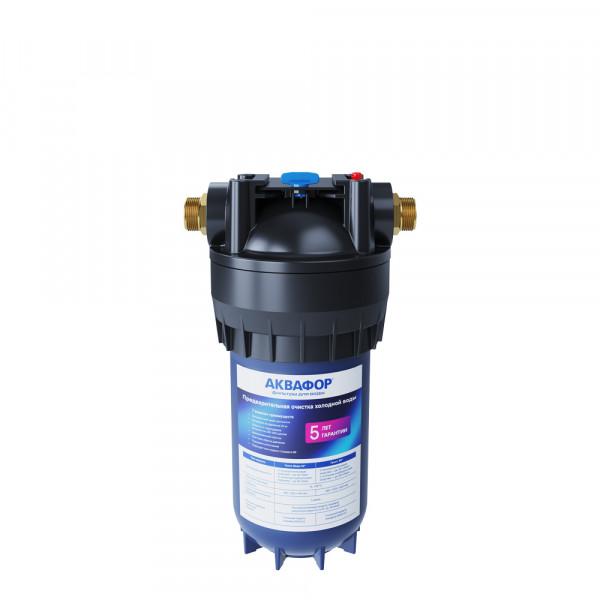 Не забывайте учитывать и срок службы фильтра: он указан в паспорте и определяет, когда модуль нужно заменить, даже если ресурс активной фильтрации в литрах еще есть.30000СорбцияСпособность “впитывать” из воды растворенные, “невидимые” вредные примеси, по принципу губки. Активированный уголь - основной сорбционный материал, который используется в картриджах фильтров для питьевой воды. Например, именно так из воды удаляется хлор.даСкорость фильтрации, л/минСкорость подачи отфильтрованной воды из крана чистой воды на мойке. Например, при скорости фильтрации 2,5 литра/минуту стакан 200 мл. наполнится меньше, чем за 10 секунд.10,0КомплектацияГотовый фильтр состоит из корпуса и картриджа для очистки воды. Если вы приобретаете только корпус, необходимо отдельно купить подходящий к нему картридж: это может быть картридж для механической очистки воды от ржавчины, картридж для глубокой очистки воды от хлора.готовый фильтрВодаКартриджи и корпуса фильтров рассчитаны на определенную температуру воды. Данные технические характеристики важно учитывать, поскольку от этого зависит качество очистки и срок службы фильтра.холоднаяМатериал корпусаПищевой пластик: Допущен к контакту с пищевыми продуктами. Нержавеющая сталь: Долговечный и безопасный корпус из нержавеющей пищевой стали.пищевой пластикОчисткаМеханическая очистка: Задерживает ржавчину, ил, песок, как “сито”. В корпусе предфильтра с механической очисткой установлен полипропиленовый модуль. Глубокая очистка: Подходит, чтобы купать детей в чистой воде. Делает прием душа и умывание более приятным. Фильтр глубокой очистки воды во всей квартире не только останавливает ржавчину, ил, песок, но и впитывает растворенные опасные примеси, как губка. Удаляет из воды хлор, хлорорганические вещества, пестициды и другие загрязнители.глубокаяДля холодной водыда