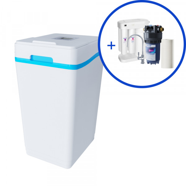 Малогабаритная система умягчения воды с обратноосмотической системой очистки и предфильтрацией в подарок