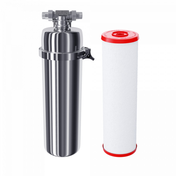 Корпус изготовлен из нержавеющей стали и не подвержен деформации или коррозии. Он выдержит любые перепады давления и защитит от протечек. Гарантированный срок службы фильтра – 10 лет, однажды установив его, можно закрыть вопрос чистой питьевой воды на долгие годы. Элегантный дизайн фильтра подойдет для ванной, кухни или офиса, он выдержит давление до 20 атмосфер, устойчив к коррозии и механическим повреждениям.